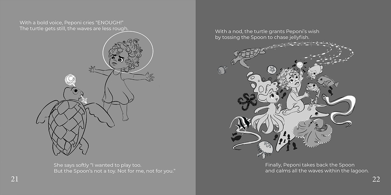 When five-year-old Princess Peponi can no longer wait to wield the power of her mami's Moon Spoon, she takes matters into her own tiny hands. How will a five-year-old princess handle the mighty power of controlling the Caribbean Sea? Find out with Peponi and her ocean reef friends for a riveting night in the warm West Indies!Princess Peponi and a Spoonful of Moon combines the vividly immersive style of Rani’s Remarkable Day by Saadia Faruqi with the exploration of a Caribbean setting found in Looking for a Jumbie by Tracey Baptiste.